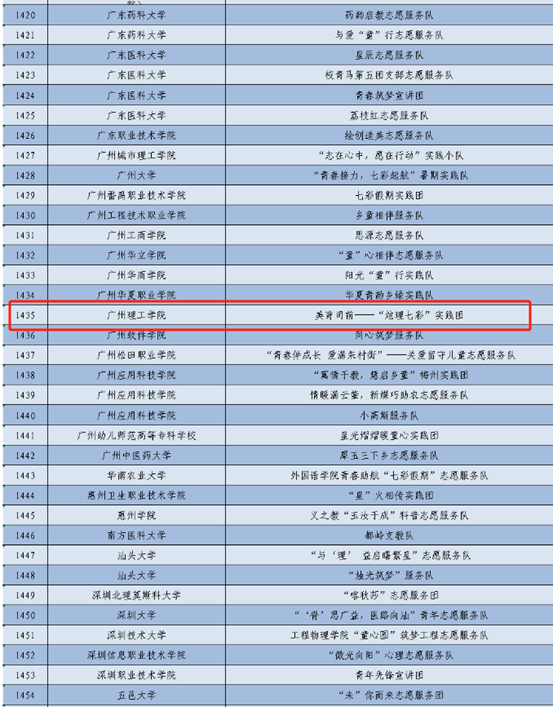 2024年关爱行动“七彩假期”志愿服务团入选团队名单