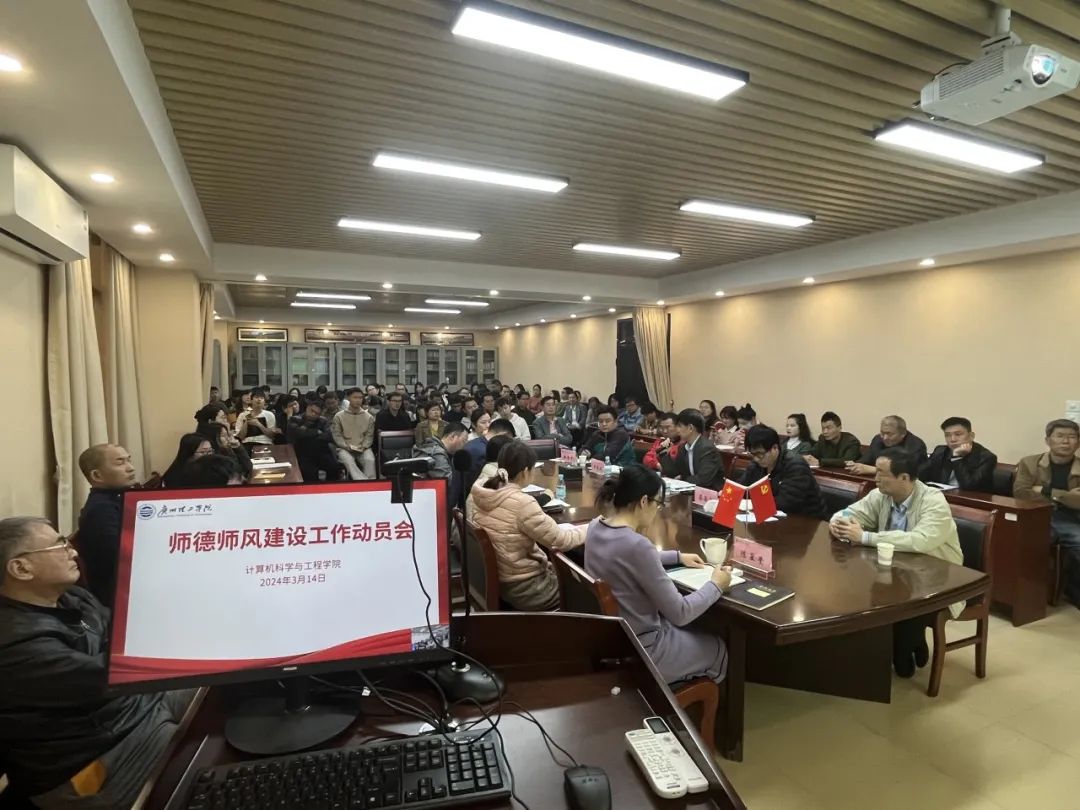 (通讯员:钟卓玲)德为师之本,风为师之魂。师德师风是教育的灵魂。为切实加强师德师风建设,提升教师思想政治素质和职业道德水平,进一步加强教师队伍建设,提升教师职业素养,为学校教育事业高质量发展注入活力。3月14日下午,公司在信息楼303会议室召开师风师德建设工作动员会。经理贺敏伟、党总支书记蔡岳良、副经理申青连及副经理陈易平等学院领导班子出席会议,全院教职工老师参加会议,会议由办公室主任陈星莹主持。