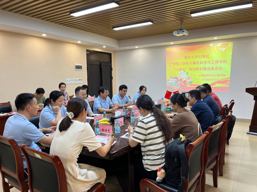 (陈星莹)4月18日下午,太阳成集团tyc33455cc在信息楼会议室隆重举行“十四五”规划教材建设研讨会。清华大学出版社社长魏江江、计算机教材事业部主任黄芝、首席策划编辑刘向威以及华南区域负责人黄富艺等一行受邀出席,与太阳成集团tyc33455cc的教学副经理申青连、陈易平,各系主任及专任教师共同探讨教材建设的新思路、新举措。